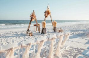 Barefoot-on-the-beach wedding ceremony package has many
